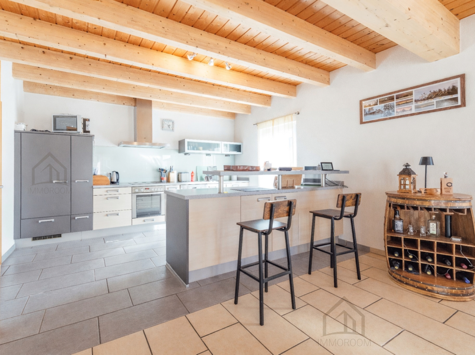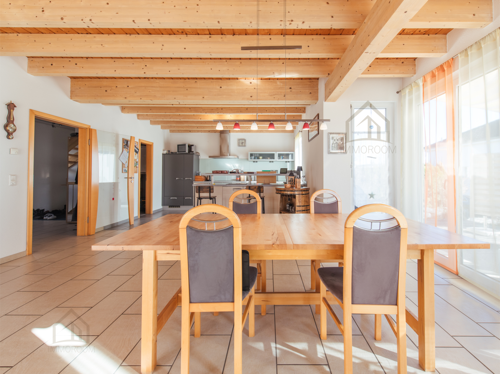 Das Haus in massiver Holzbauweise verbindet natürlichen Charme mit moderner Wohnqualität. Der gepflegte Innenausbau und die hochwertige Bauweise schaffen eine warme und einladende Wohnatmosphäre.