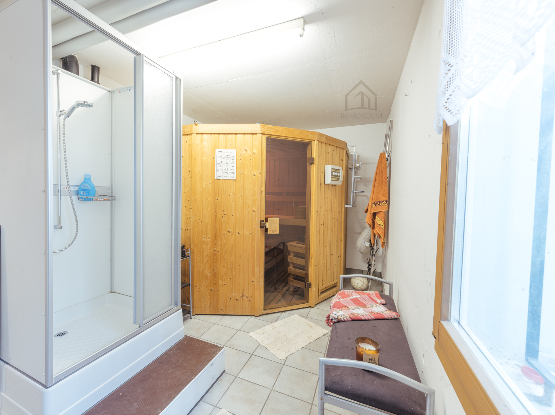 Der Wellnessbereich im Untergeschoss ist ein echtes Highlight. Eine Sauna mit angrenzender Duschkabine sowie ein türkisches Dampfbad (Hamam) mit beheizter Insel laden zum Entspannen ein. Ein Kinoraum sorgt für Unterhaltung, während der Weinklimakeller und die Abstellkammer diese Etage perfekt abrunden.